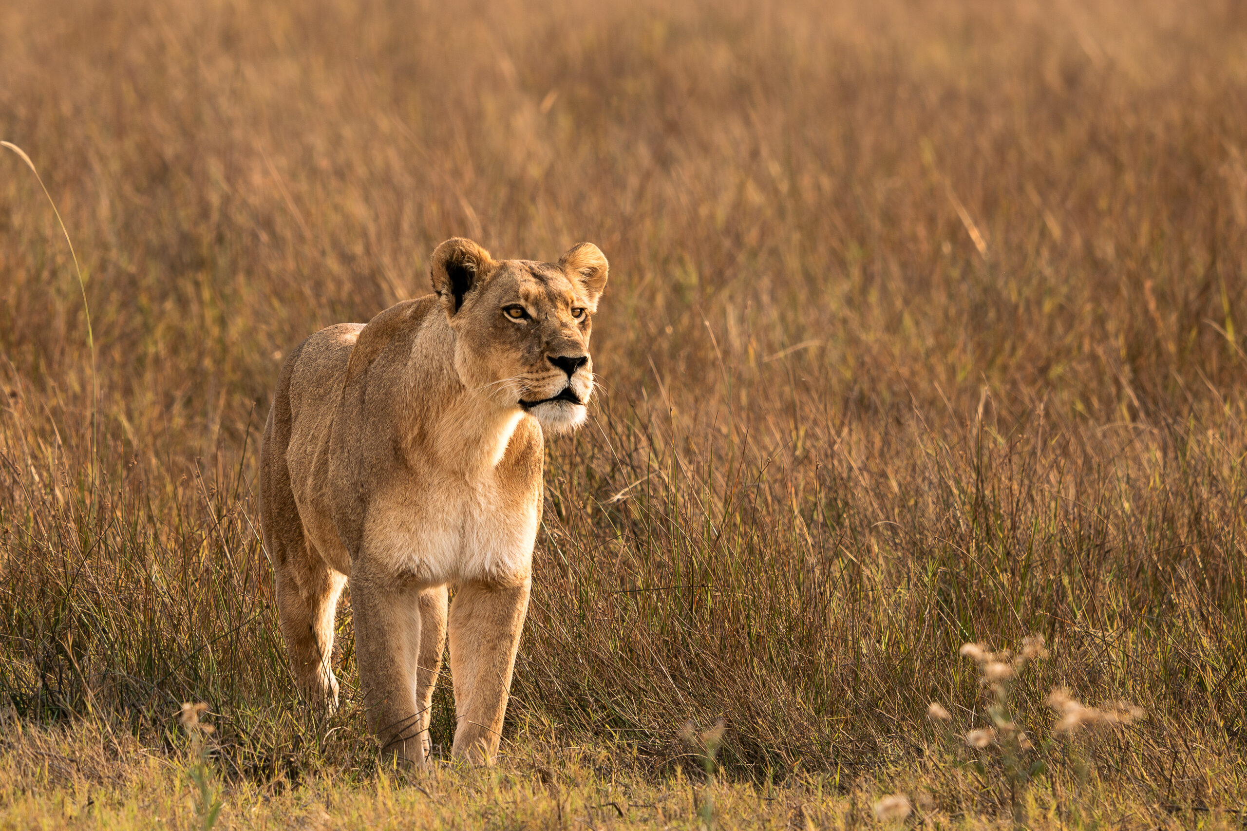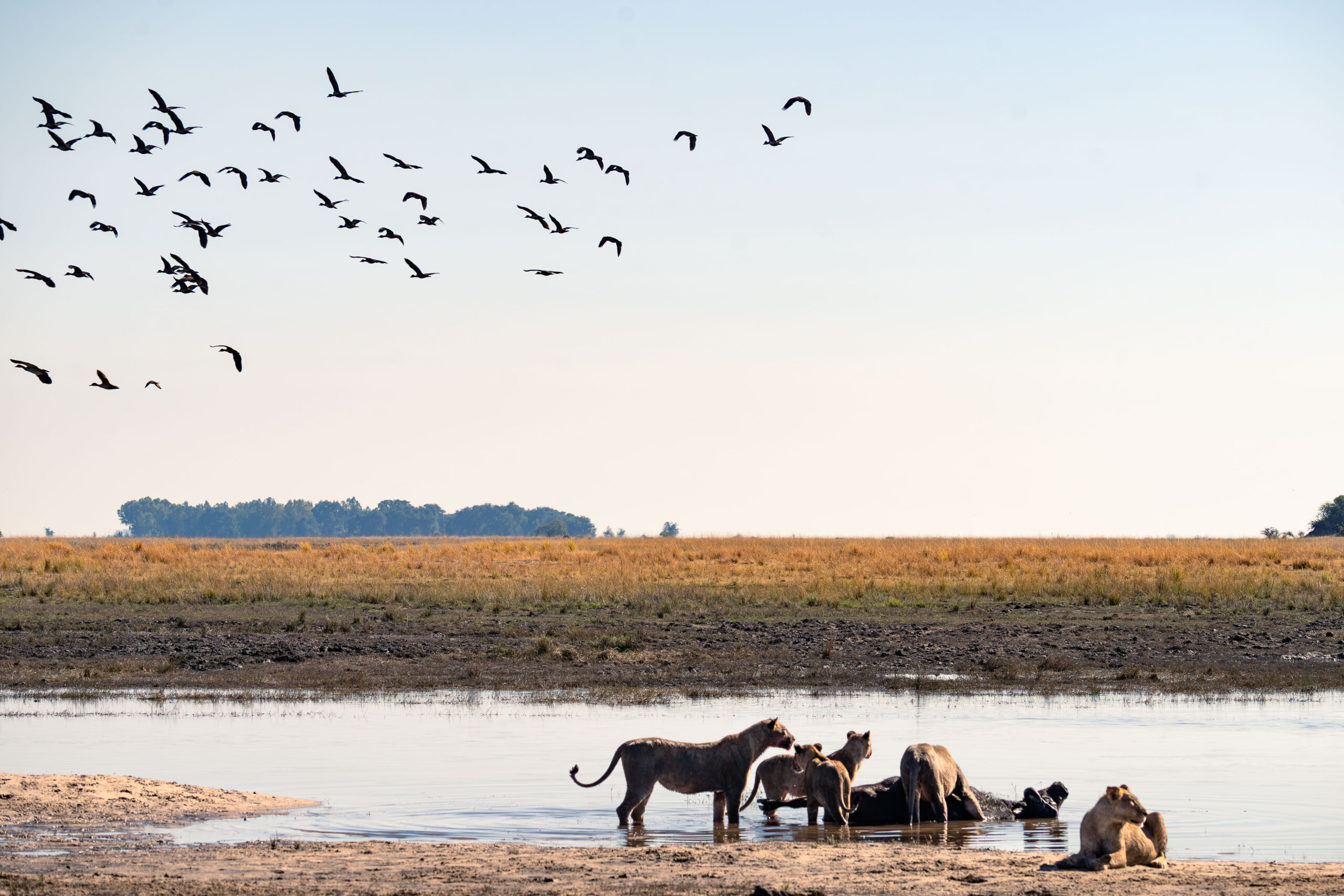 Plus loin, Savuti, avec ses paysages arides et ses grands espaces ouverts, est le royaume des lions. Les immenses troupeaux de buffles et de zèbres qui traversent la région attirent une concentration impressionnante de prédateurs, offrant des scènes de chasse spectaculaires.